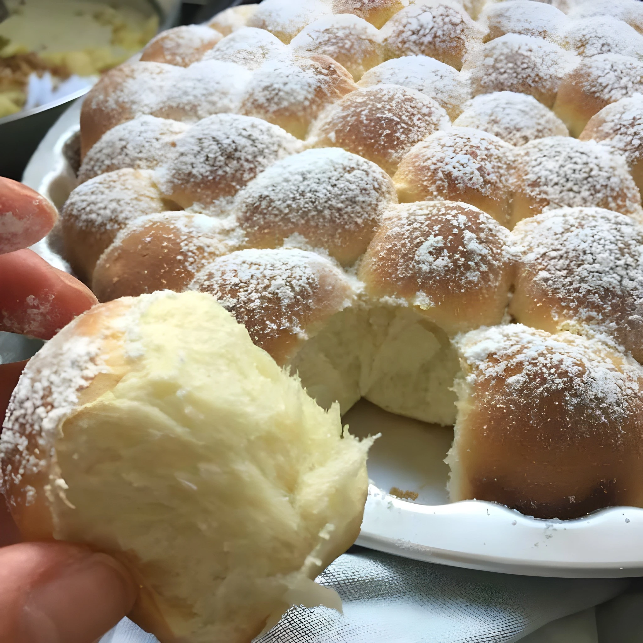 Stäube etwas Puderzucker auf die warmen Buchteln und serviere sie auf einem hübschen Teller.