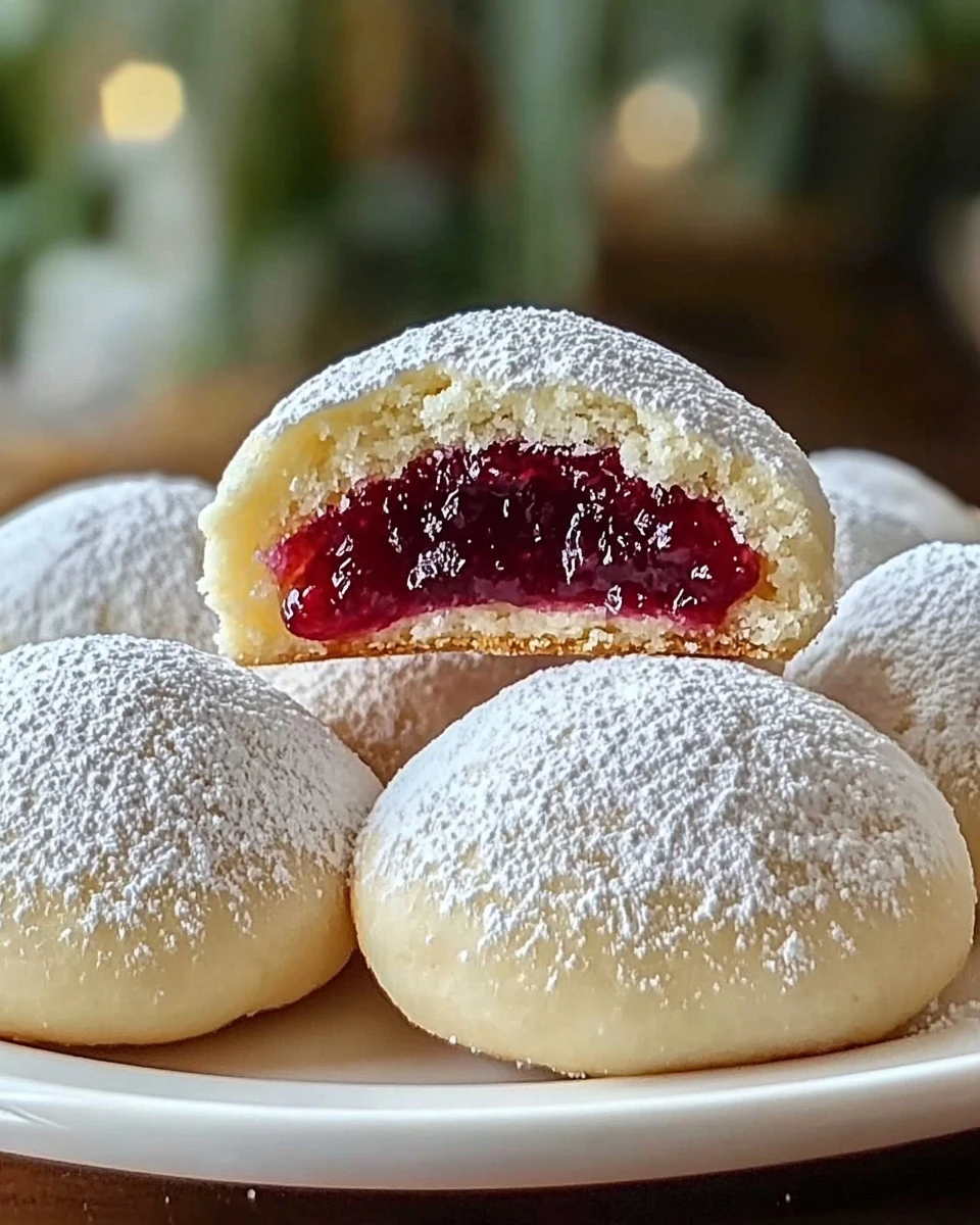Bestäube die Kekse vor dem Servieren mit Puderzucker für ein festliches Aussehen. Sie halten in einem luftdichten Behälter bis zu einer Woche frisch und können auch eingefroren werden.