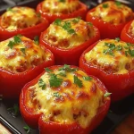 - Backen: Im vorgeheizten Backofen bei 180 °C etwa 30 Minuten backen, bis die Paprika weich und die Füllung goldgelb ist.