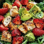 Es gibt Rezepte, die nach Sommer schmecken – und dieser Erdbeer-Hähnchen-Salat mit Avocado und Burrata gehört für mich definitiv dazu! Jedes Mal, wenn die ersten warmen Sonnenstrahlen auf meine Terrasse fallen und die Erdbeeren im Supermarkt so richtig nach Saison riechen, weiß ich: Jetzt ist der perfekte Zeitpunkt, diesen herrlich leichten und farbenfrohen Salat zuzubereiten. Mein erster Bissen von diesem Salat erinnerte mich an Picknicks im Park, bei denen wir mit Freunden stundenlang gelacht, geredet und einfach das Leben genossen haben. Die Kombination aus saftigen Erdbeeren, zartem Hähnchen, cremiger Avocado, pfeffrigem Rucola und dem besonderen Touch von Burrata und schwarzem Sesam ist einfach unschlagbar! Wenn du Lust auf einen echten Sommer-Genuss hast, probiere direkt meinen Lieblingssalat: Erdbeer-Hähnchen-Salat mit Avocado und Burrata.
