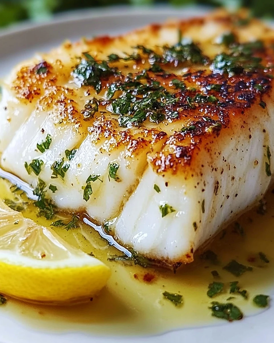 Goldgebratener Kabeljau mit Kräuterbuttersauce