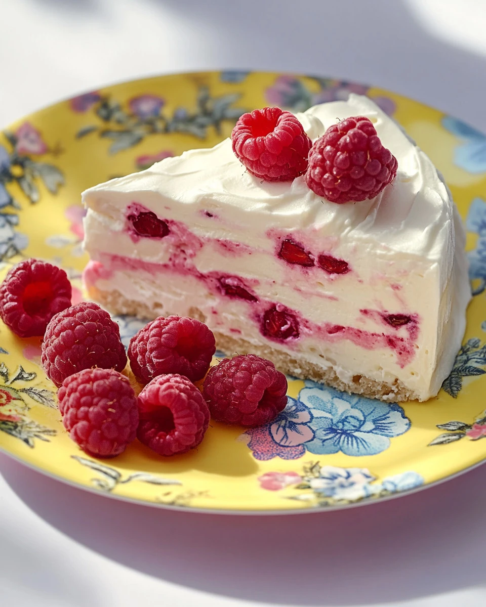 Und das war’s! Viel Spaß beim Nachmachen dieser super einfachen und köstlichen Himbeer Eistorte mit Frischkäse!