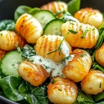 Es gibt Gerichte, die schmecken wie ein kleiner Urlaub auf dem Balkon – und mein knuspriger Gnocchi-Salat mit Joghurt Dressing ist genau so einer. Ich erinnere mich noch an letztes Jahr, als ich im Hochsommer völlig spontan Freunde zum Abendessen eingeladen habe. Keiner hatte große Lust auf schwere Kost, aber alle waren hungrig auf etwas Frisches und Besonderes. Während draußen die Sonne unterging und wir Körbe voller Kirschtomaten aus dem Garten ernteten, entstand dieser lauwarme Gnocchi-Salat mit cremigem Joghurt Dressing. Kühl, knusprig, leicht – und voller knackigem Gemüse. Ein Lieblingsgericht, das nicht nur nach Sommer schmeckt, sondern sich zu jeder Jahreszeit wie ein kleiner Genussmoment anfühlt.