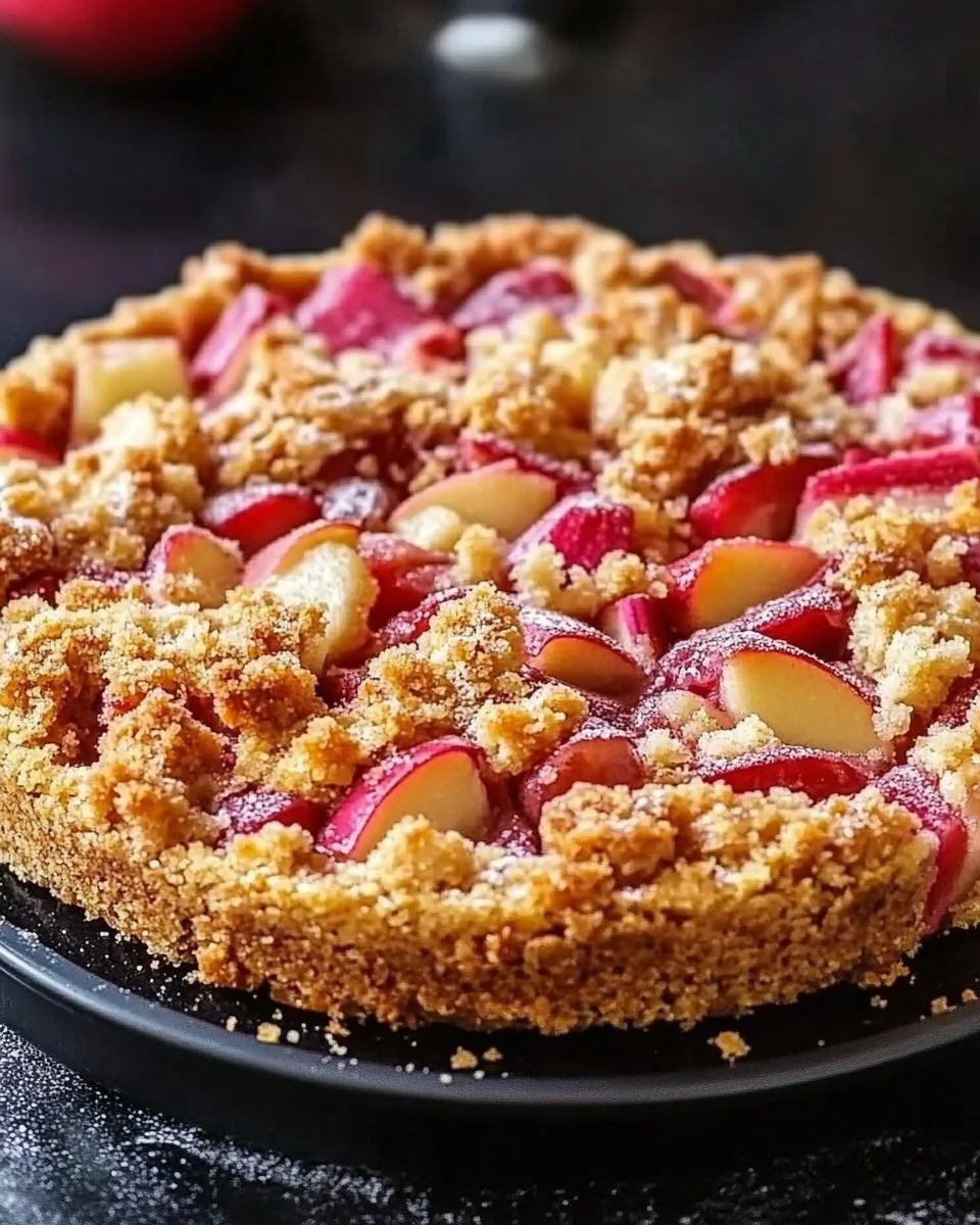 - Süß und sauer in perfekter Harmonie: Die leicht säuerlichen Rhabarberstücke treffen auf goldene, knusprige Streusel – einfach ein Traum.
