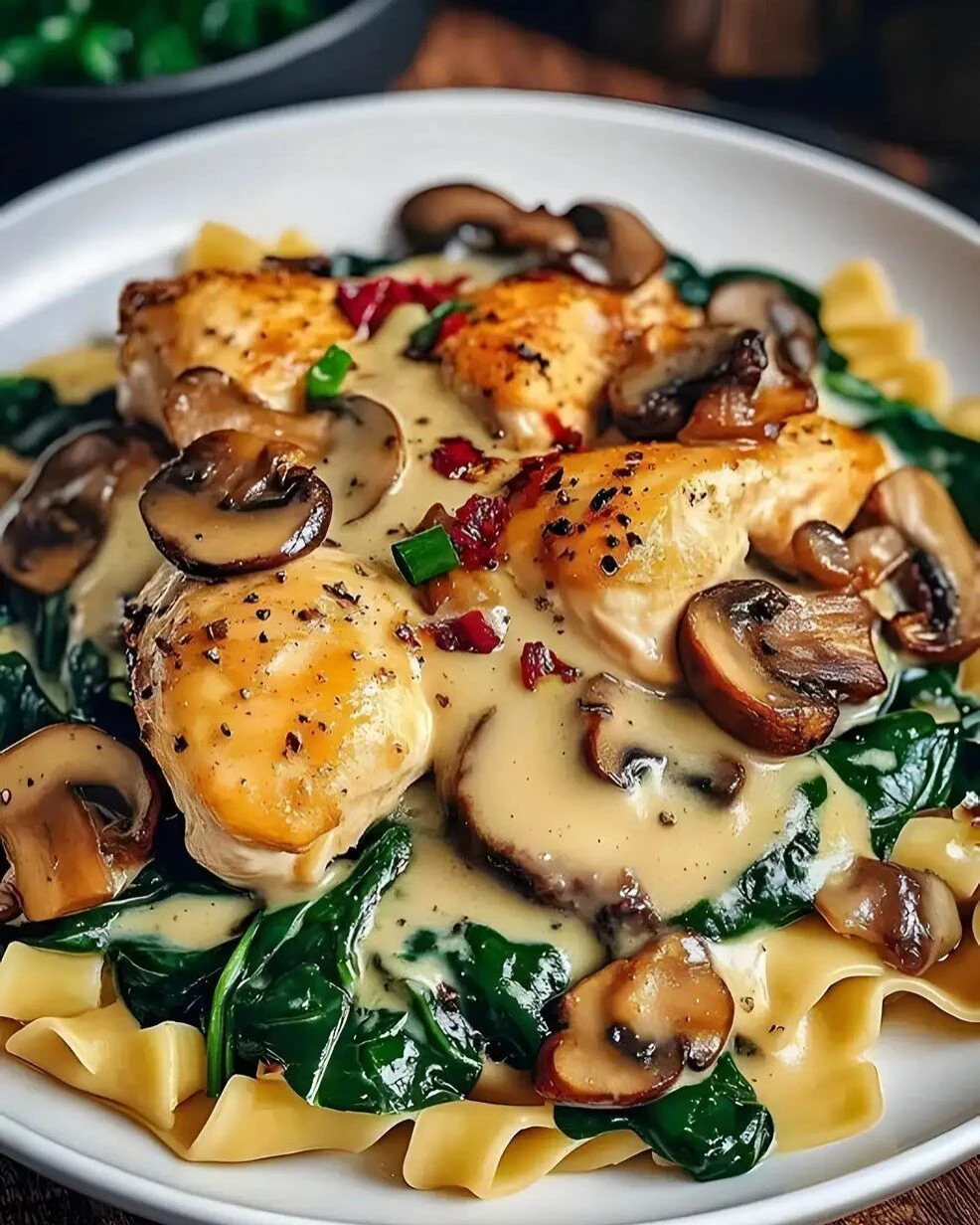 Spinat mit Hähnchenbrust in Knoblauch-Parmesansauce