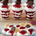 - Rote Grütze drübergeben: Zum Schluss die Rote Grütze gleichmäßig darüber verteilen. Schau, wie die fruchtige Sauce langsam über die Quarkschicht läuft!